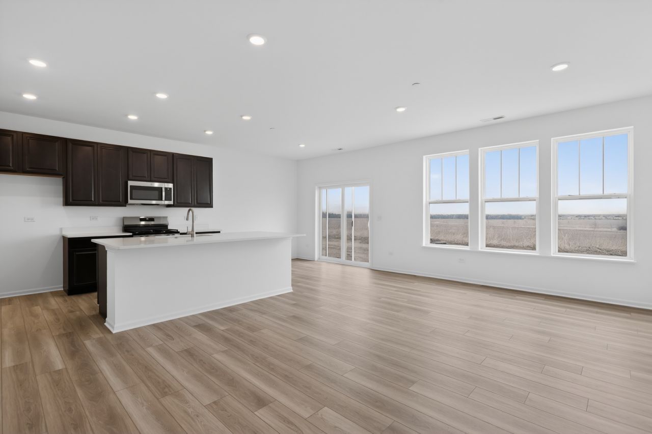 Enter a sanctuary of comfort and charm in this stunning Marianne A model. This three-bedroom, two-and-a-half-bathroom townhome showcases a striking contemporary design, thoughtfully crafted for modern living. The main level boasts an open-concept layout where the kitchen, great room, and dining area flow together seamlessly. Notable kitchen features include a spacious center island, sleek quartz countertops, ample cabinetry, a undermount sink, and top-of-the-line stainless steel appliances. Elegant touches-such as two-panel interior doors, classic colonist trim, luxury vinyl plank flooring, and energy-efficient LED lighting-further enhance the home's appeal. Perched on the second floor, a spacious, the light-filled loft offers a heightened sense of openness and possibility. Whether imagined as a home office, an inspiring creative studio, or a cozy reading nook, this adaptable space meets your needs with style. Completing the upstairs are three inviting bedrooms, including a luxe owner's suite designed for ultimate comfort and sophistication. The owner's suite offers a private retreat with a spacious walk-in closet, and a spa-inspired deluxe shower-your personal haven after a long day. Welcome to Hudson Pointe II, a beautifully designed master-planned community offering brand-new homes in the heart of Oswego, Illinois. Perfectly blending comfort, convenience, and natural beauty, this neighborhood is ideal for families and individuals seeking a balanced lifestyle. Right within the community, residents can enjoy a well-maintained park for leisurely play and gatherings, as well as a serene pond that enhances the peaceful atmosphere of Hudson Pointe II. Just 10 minutes from the Naperville Route 59 corridor, Hudson Pointe II places premier shopping, dining, and entertainment within easy reach. Access top destinations like Whole Foods, Amazon Fresh Market, LA Fitness, and Costco, along with a variety of local restaurants and entertainment spots. Families will appreciate the top-rated Oswego School District 308, with students attending Southbury Elementary, Murphy Junior High, and Oswego East High School-all conveniently located within a 10-minute drive. Outdoor enthusiasts will love the close proximity to Wolf's Crossing Community Park, offering an array of recreational features including playgrounds, an outdoor fitness area, a splash pad, and more-perfect for year-round family fun.