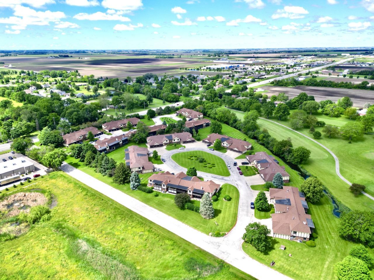 Beautifully maintained first floor condo, in golf course community, offers ease of living. Move right in and enjoy 2 bedrooms, 2 baths, living room with a brick gas fireplace and additional 20 x 8 sunroom. Walk in closets can be found in both bedrooms and master bedroom includes a bath with shower. Nice size kitchen with separate dining area has many new updates. 2026 improvements include new kitchen countertops, refrigerator, electric glass cooktop, range hood, kitchen faucet/sink and updated lighting. New paint throughout the condo. Utility room has a pantry closet for additional storage. The attached one car garage comes with a closet to store overflow. But you won't need to store your mower and snow shovel. Lawn care, snow removal, outside maintenance, garbage collection, water and sewer service is all included in the HOA fee. Come see what condo living is all about.